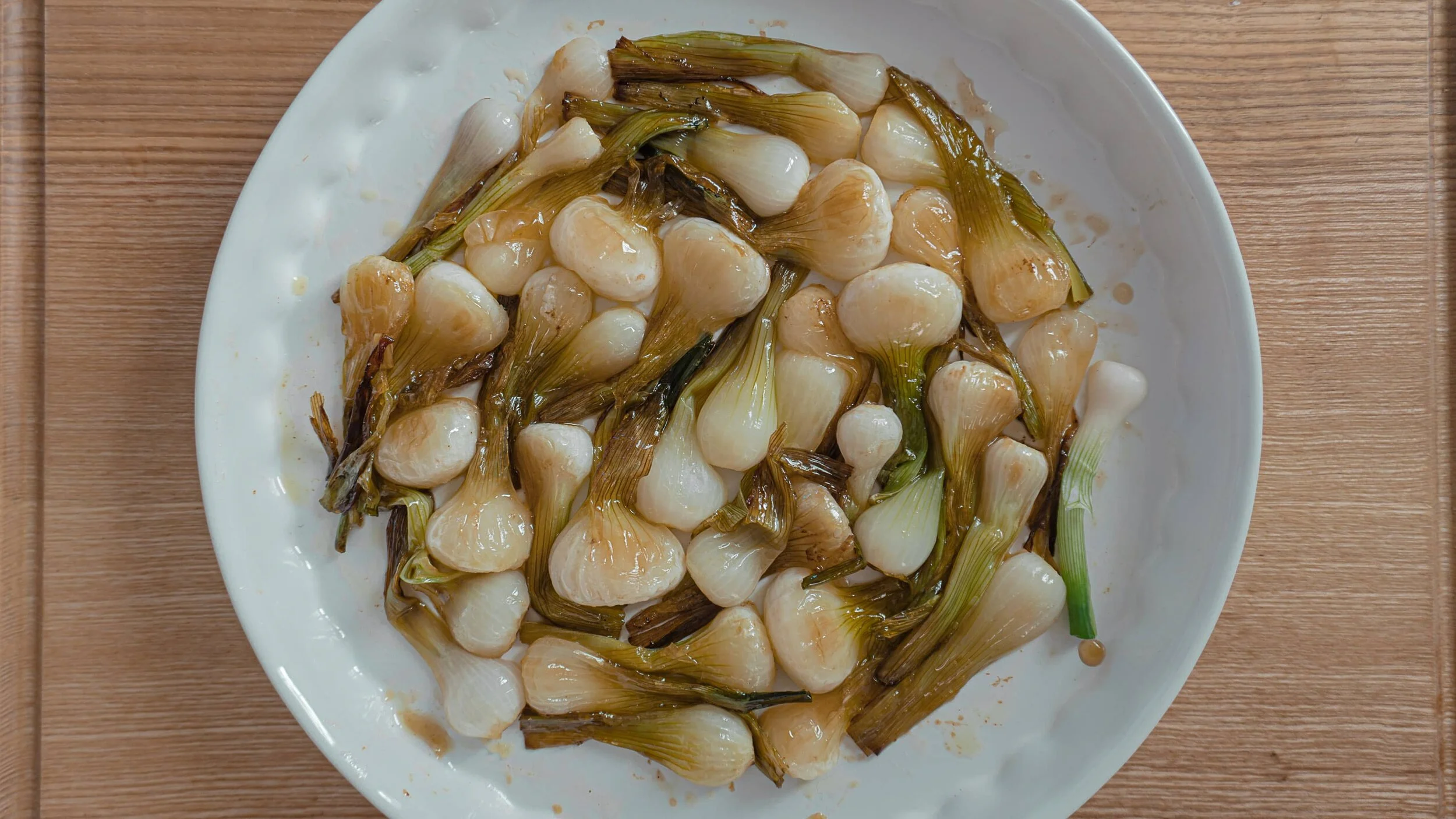 Disposez les oignons, têtes vers le bas pour avoir un joli visuel, dans un plat en faisant attention à ne pas les défaire.